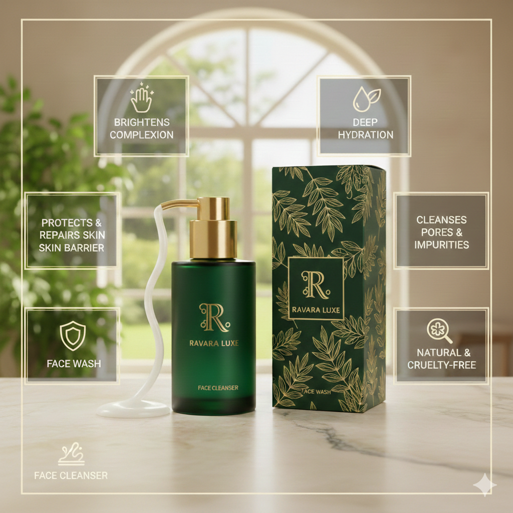 RAVARALUXE Cleanser is formulated to gently cleanse the skin by removing dirt, excess oil, and daily impurities while maintaining the skin’s natural moisture balance. Its mild, skin-friendly formula helps leave the skin feeling clean, refreshed, and comfortable without dryness or tightness.